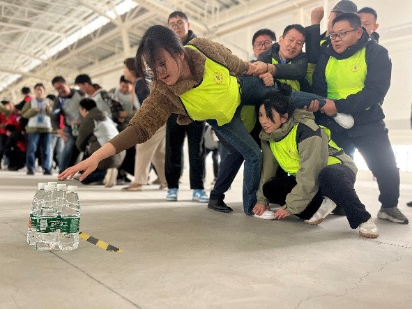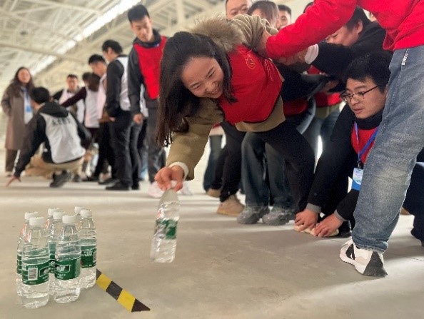 團隊的創建與融合在“選隊長-組團隊-亮隊名-喊口號”中拉開序幕,各支隊伍在“群龍取水”“鼓動人心”“能量傳遞”“破解手鏈”“激情節拍”等系列主題拓展項目中,斗志昂揚、活力四射、同心同德、默契配合,現場氣氛時而緊張激烈,時而輕松歡快,到處洋溢著青春與活力,隊員們展現出頑強拼搏、奮勇爭先的精神面貌和齊心協力、群策群力的團隊精神。